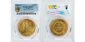 Lot 46/134 France :: France. 100 Francs Génie 1886-A. PCGS MS63
