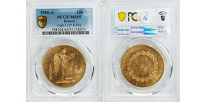 France. Third Republic (1870 - 1940). 100 Francs Génie 1900-A. PCGS MS65. Paris. Mintage: 20,260 pieces only. The highes ...