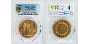 Lot 46/136 France :: France. 100 Francs Génie 1906-A. PCGS MS62