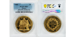 Lot 46/137 France :: France. 10 Francs Hercule. Piefort 1965. PCGS SP67