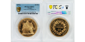 Lot 46/138 France :: France. 10 Francs Hercule. Piefort 1972. PCGS SP62