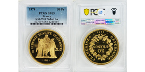 Lot 46/139 France :: France. 50 Francs Hercule. Piefort 1974. PCGS SP65DCAM