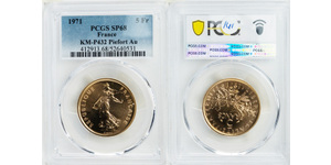 Lot 46/141 France :: France. 5 Francs Semeuse. Piefort 1971. PCGS SP68