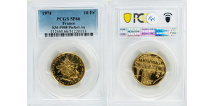 Lot 46/142 France :: France. 10 Francs Mathieu. Piefort 1974. PCGS SP66