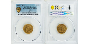 Lot 46/197 Italy :: Italy. 10 Lire 1863-T BN. PCGS Cleaned - UNC Details