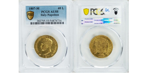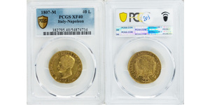 Lot 46/204 Italy :: Italy - Napoleonic Kingdom. 40 Lire 1807-M. PCGS AU55