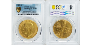 Lot 46/207 Italy :: Italy. 100 Lire 1923-R. PCGS Cleaned - AU Details