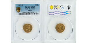 Lot 46/196 Italian States :: Italian States - Sardinia. 10 Lire 1839 P. Eagle. PCGS XF45