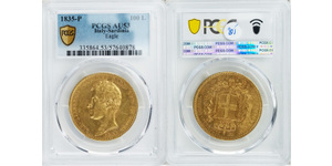 Lot 46/205 Italian States :: Italy-Sardinia. 100 Lire 1835-P. Eagle. PCGS AU53